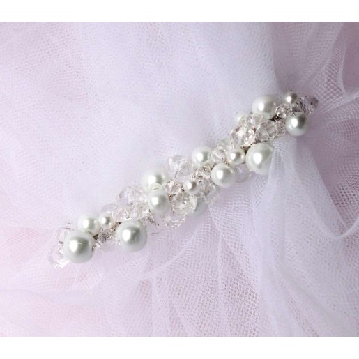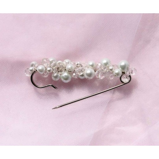 Epingle 70mm ornée de perles de cristal et de perles de verre nacré.