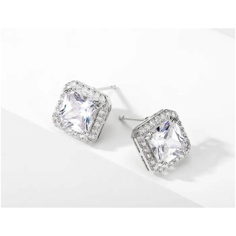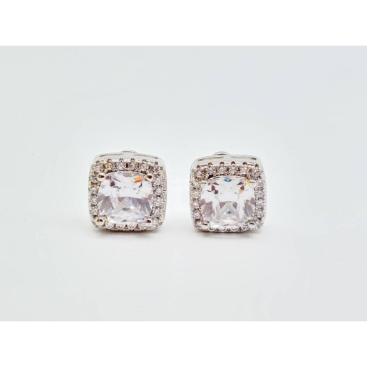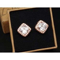 Clous d'oreilles en laiton plaqué argent rhodié ou or rose et zircons